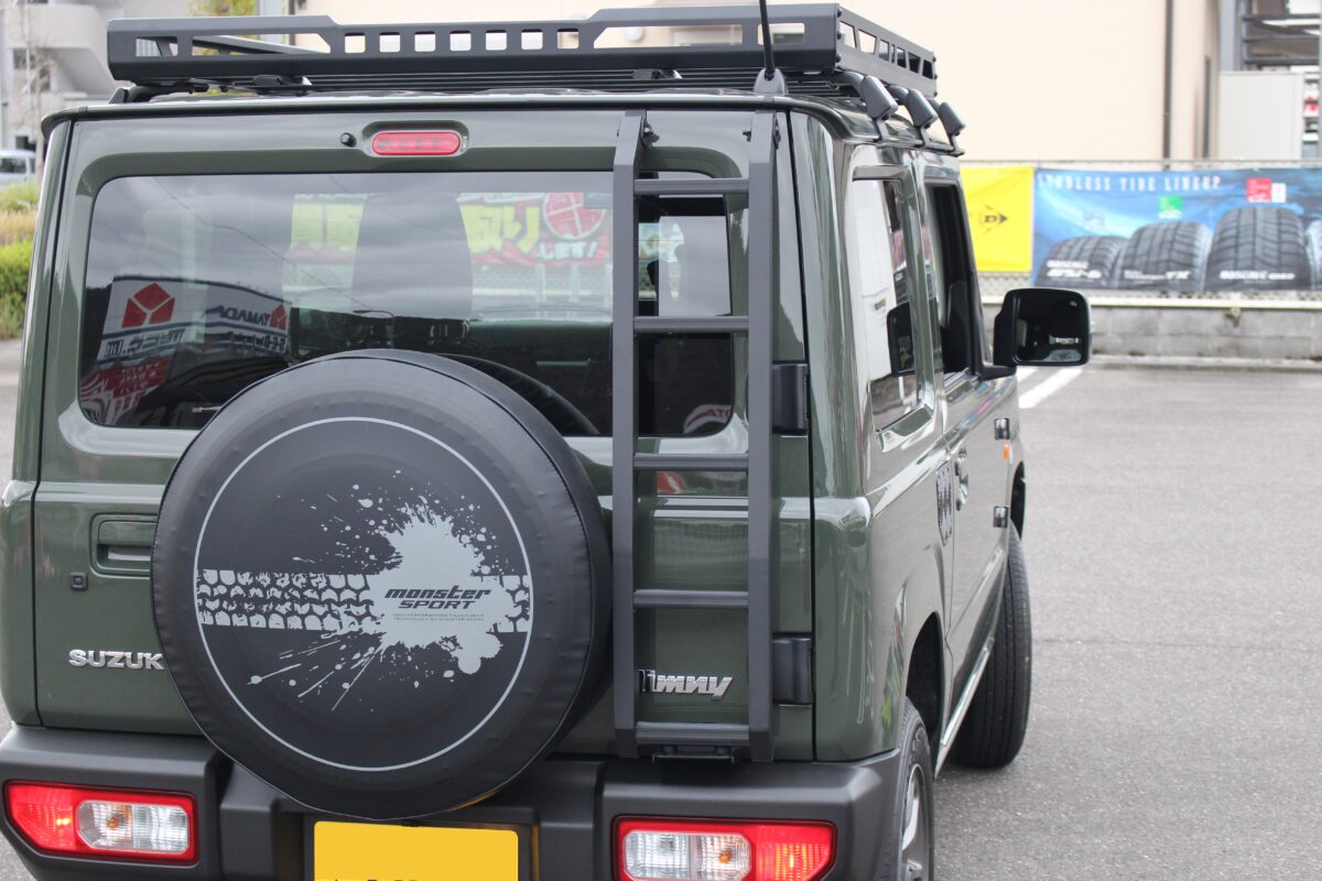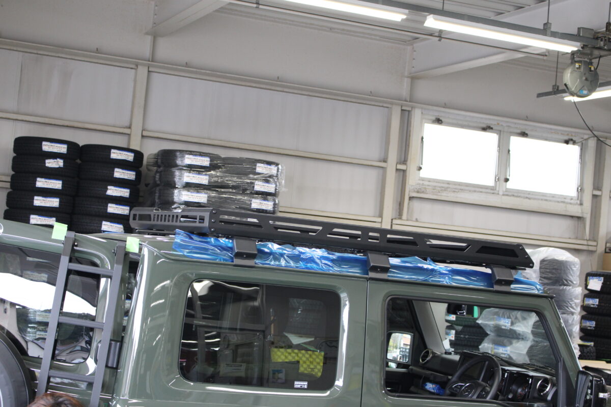 本日はジムニーのルーフラックとリアラダーを装着しました!