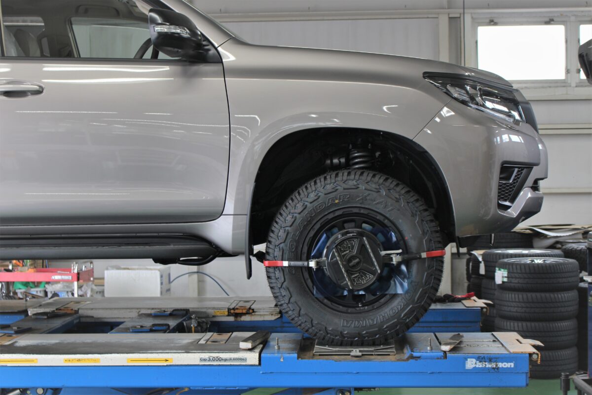 本日は150プラドのリフトアップ&ホイール交換をご用命