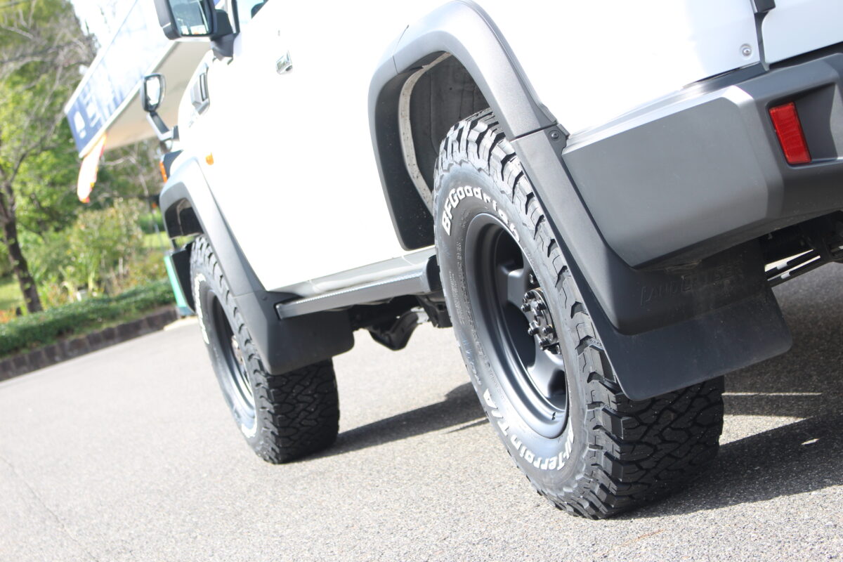 ■ランクル70再再販モデルをオフ系カスタム!ブラッドレーVとジオランダー X-AT装着! ご相談を多数頂いておりますランクル70シリーズの再再販である「GDJ76W」をオフロードカスタムしていきます✨ 皆様こんにちは、アーバンオフクラフト鈴鹿店の神田橋です! 早速取り付けする商品を紹介します‼ WHEEL:4×4Engineering BRADLEY V COLOR:マットブラック TIRE:YOKOHAMA GEOLANDER X-AT G016 オフロードホイールの王道! 「ブラッドレーV」を選択。 シンプルでありながら、オフロード感を演出させる5本スポークホイールとなっています 車両に溶け込む無骨なデザイン、堪りません・・・ リアのホイールの深リム具合には惚れ惚れしちゃいますね(˙˘˙*) かっこいいです✨ ナットにも拘りを!! シンプルな黒のナットもいいですが、ナットも同じメーカーに統一することでさらにオシャレに履きこなし。 オフロードカスタムといえば、ブロックタイヤは欠かせません! ヨコハマのR/Tタイヤの位置付けである 「ジオランダー X-AT G016」をチョイス。 ゴツゴツ感溢れるトレッド面とサイドウォールが、どこでも駆け抜けていきそうな感じでイイ・・・ R/Tタイヤの位置付けのため、オンロードでの快適性もある程度備えられているので、「ゴツゴツしたかっこいいタイヤが欲しいけど、街乗りでの快適性も損ないたくない」という欲張りな方にピッタリなタイヤですよ!!(笑) ブロックタイヤには大きく分けて「A/T」「R/T」「M/T」と三種類のタイヤがあるので、自分に合ったタイヤを選んでいきましょう✨ ※ブロックタイヤの詳細は→→コチラ←←で解説しています さらに、タイヤを表と裏で組む向きを変えることで、自分好みのデザインを選ぶことが可能です 至れり尽くせりなブロックタイヤです✨   というわけで、装着後の姿をご覧ください! 【BEFORE】 【AFTER】 ホイール:4×4エンジニアリング ブラッドレーV カラー:マットブラック タイヤ:ヨコハマ ジオランダー X-AT G016 【Side view/BEFORE】 【Side view/AFTER】 マットブラックのカラーが車両全体を引き締めており、深リムでシンプルなデザインが堪りません・・・! R/Tタイヤのゴツゴツ感も大満足な見た目になったのではないでしょうか!? ちなみに、今回は背面のセットも変えさせていただきましたよ! 後ろからの見た目もバッチリカスタムでイイ感じです 素敵な4×4ライフをお過ごしくださいね👍 皆様も気分のアがるオフロードカスタムを是非いかがでしょうか!? カスタムすることでもっともっと愛車に愛着が沸くこと間違いなしですよ✨ 是非当店にご相談ください‼ 以上、アーバンオフクラフト鈴鹿店でした 【次回開催予定のイベント情報】 管理番号:0222511241013