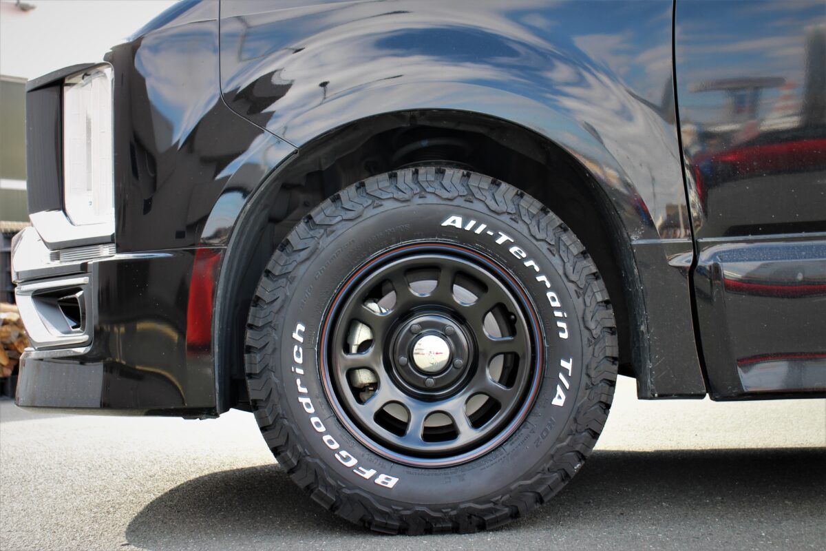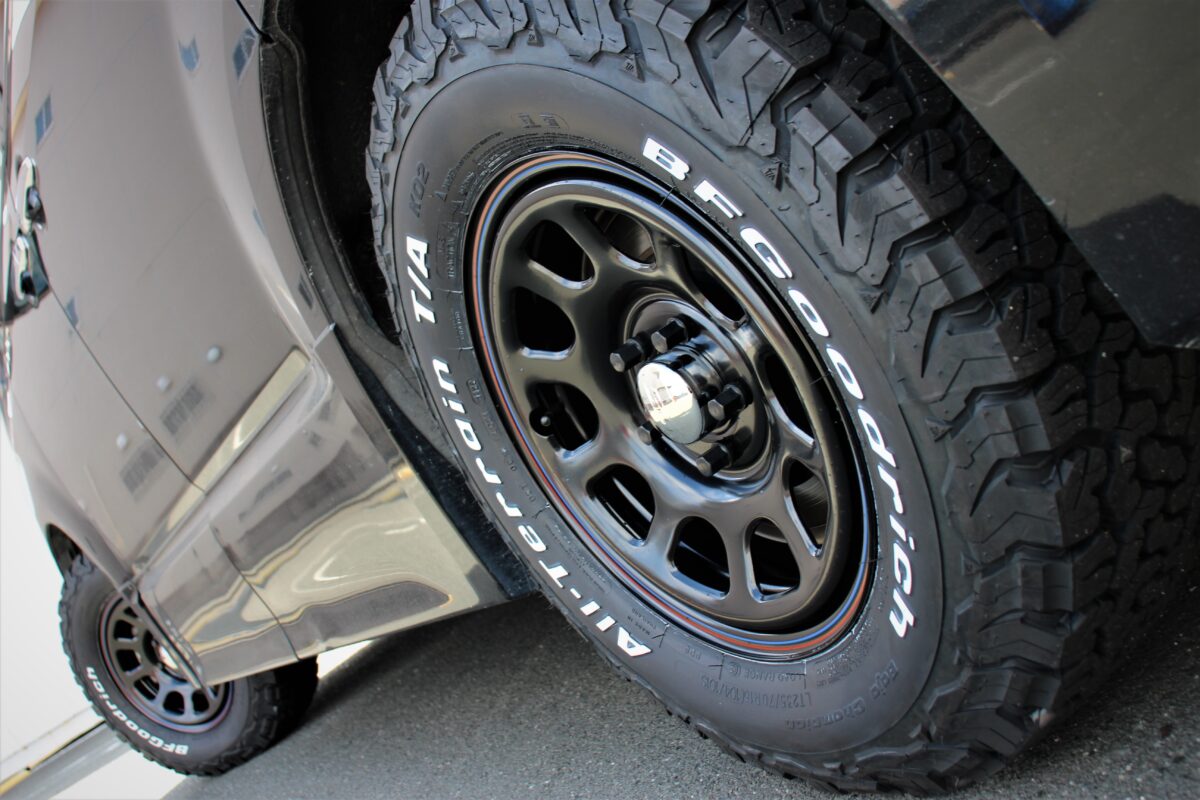 ブラックで統一された仕上がりに、BF Goodrich KO2のホワイトレターが良い感じに
