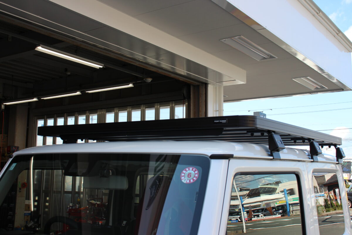 今回取り付けるルーフラックは当店デモカーにも装着されている『フロントランナー SLIM LINE Ⅱ』