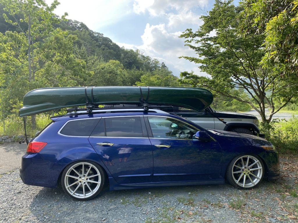 そこには、目を疑うような光景が(笑)シャコタンのアコードに大きなカヌーを積み