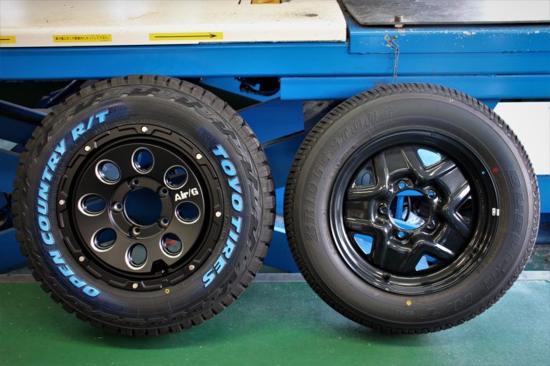 純正の鉄チンスタイルも悪くないですがせっかくならよりオフスタイルに^^