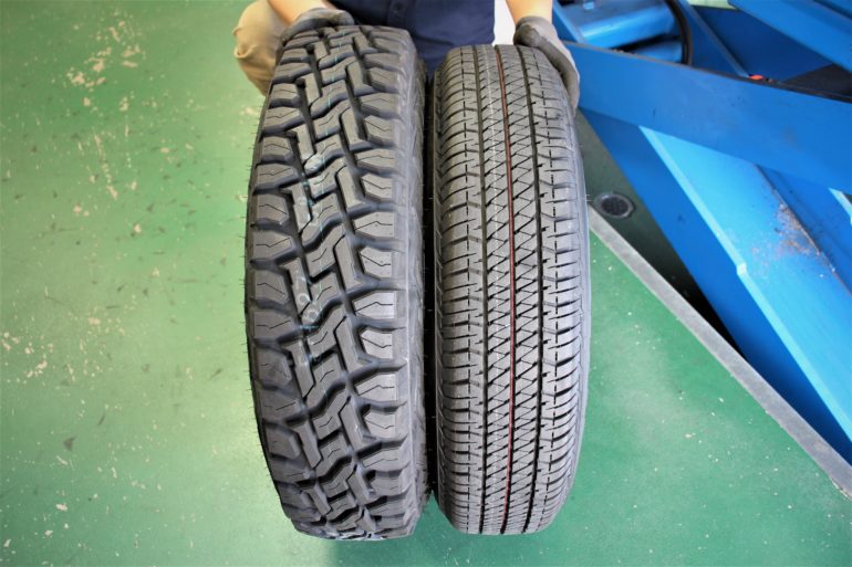 オンロード寄りのツルっとしたトレッドデザインから無骨なトレッドデザインへグレードアップ!