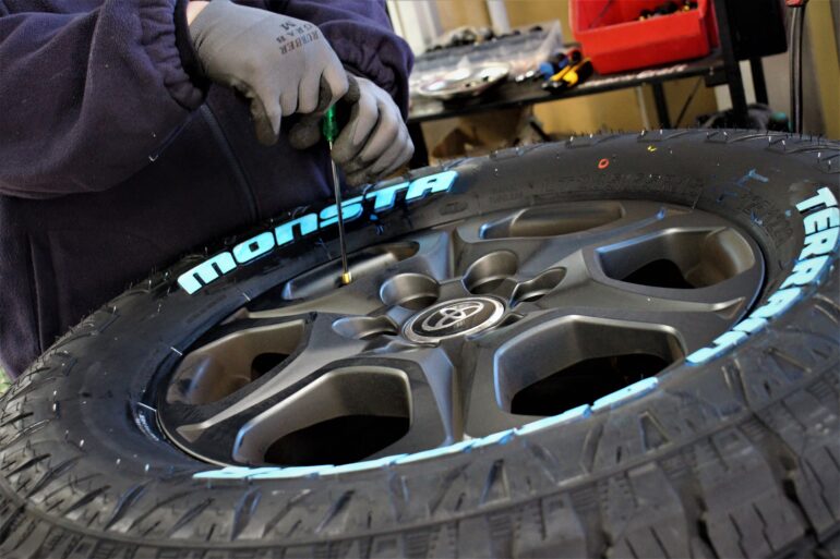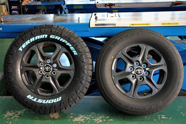 せっかく交換するならと今回はタイヤ外径もアップさせて取り付けしていきます