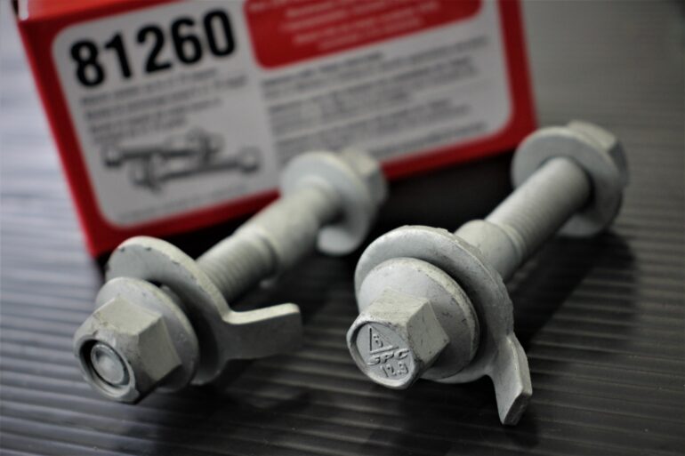 リフトアップ時に起きてしまうキャンバーを適正な位置に補正するボルトですね