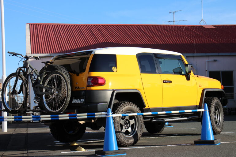 FJクルーザーにはサイクルフォルダーがジョイントされており何とも、おシャンティなー