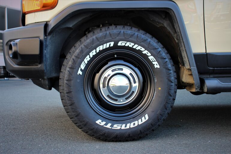 FJクルーザーにモンスタタイヤテレーングリッパー装着!! どーも🔥 アーバンオフクラフト長良店クマザキです!!   本日は当店大人気タイヤ「モンスタタイヤ」に交換 作業をしましたのでご紹介させて頂きます👍 コチラテレーングリッパーをチョイス!!   ベタ塗り太字のホワイトレターが大人気の秘訣👍 作業していきます👏 このような仕上がりに👍   タイヤ交換時期を悩まれておりましたが在庫もあり 比較的迅速にできましたよ~!!   各メーカー値上がりが発表されておりますね。   納期もかかっているメーカーも御座いますので早めに ご相談お待ちしております🔥 オーナー様この度は有難う御座いました🔥 またのご相談お待ちしております!! タイヤ交換はアーバンオフクラフト長良店にお任せ下さい!!   では、デカバキ担当クマザキでした👍