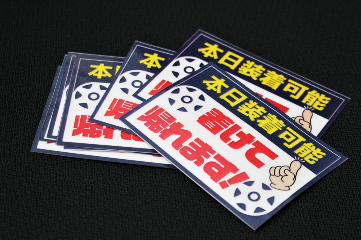 即日取付可能アイテムには、このように専用POPが装着されていますので、