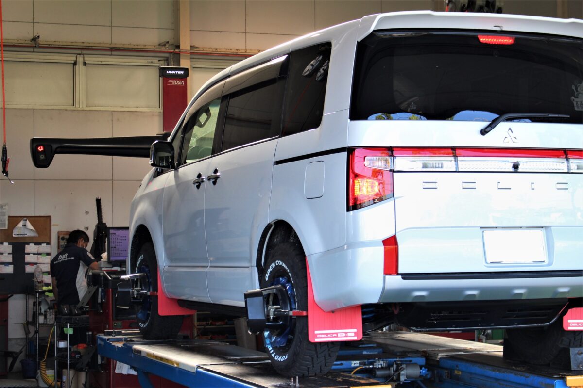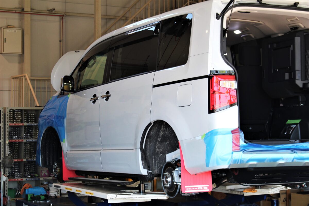 本日は【ミツビシ デリカD:5】リフトアップ作業の様子をお届けいたします!