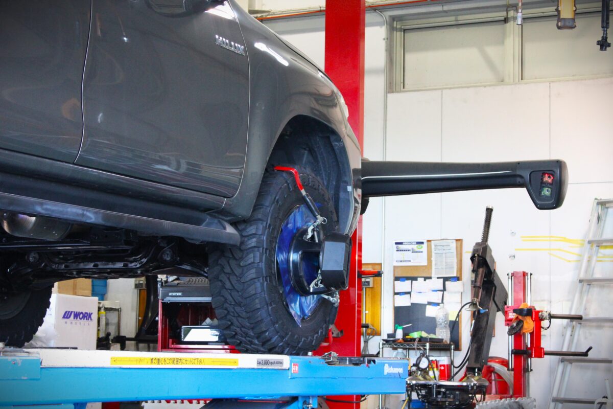 タイヤ交換に併せてアライメント作業も同時にご用命をいただきました。