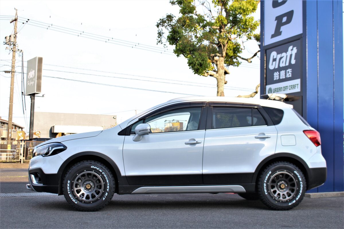基本、何でもゴザレなスタンスの鈴鹿店。 今回はレア車SX4 Sクロスのドレスアップをご用命いただきました。 さすがにワタクシ小林もまずは詳細からって感じになりまして(汗 お客様のご理解のもと、攻めのセットアップをさせていただきました! SUZUKIのSX4というクルマをご存じでしょうか? それの後継車種として外装にSUV色を色濃く出したのがSX4 S-CROSS。 スプラッシュと同じく販売拠点が海外のため輸入車という扱いの方が良いでしょうか? それもあって「ボルト車」ですし、マッチングが少ないのも頷けます。 でもそれをベースにカスタムしたら超目立つと思いません!? 相当少ないと思われるオフロードカスタムをご提案。 ホイールはご存じデルタフォースオーバルに レターのお目立ち度抜群のオープンカントリーRTをセット。 純正17インチから16インチへインチダウン。 タイヤを魅せるオフカスタムの王道でめちゃくちゃカッコ良く 仕上がりましたが、実はこれ、普通には装着できませんのでご注意(汗 ミリ単位の攻防というか、その日のうちに装着してお帰りいただくのが 前提のご即決でしたので、スペーサー云々の話ではありません・・・ 装着はプロショップにてご相談くださいね。 【 ↓ BEFORE ↓ 】 【 ↓ AFTER ↓ 】 フェンダー、インナーのクリアランスから 大幅な外径アップは行わず、据え置きサイズを組みました。 それでもこの迫力。タイヤとホイールで見た目は大きく変わるのが オフ系カスタムの醍醐味。 ツラ具合も狙ったかのように! 装着に当たり色んな問題が発生しましたが お客様のご理解とカスタムに対する勢いをいただき無事完成しました。 レアベースなので街中での存在感は別格。 これがきっかけで本格的にアウトドアを楽しまれてはいかがでしょう!? ご要望にお応えできないこともありますが 今回はお客様の「やりたい」を見事に具現化できました。 ご相談はアーバンオフクラフト鈴鹿店へドウゾ。 ありがとうございました! 3Dアライメント の ご予約 は 下記番号 へ (スマホの場合はタッチでかかります) 「 クラフト鈴鹿店 」 ℡:0593814311 三重県鈴鹿市西玉垣町15-2 毎日更新のクラフト鈴鹿店は スマホで「お気に入り」登録! https://craft-web.pro/blogs/suzuka/
