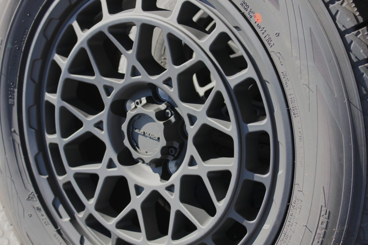 中心のメッシュデザインと外周のシンプルなスポークデザインを組み合わせて四駆感を演出しています!