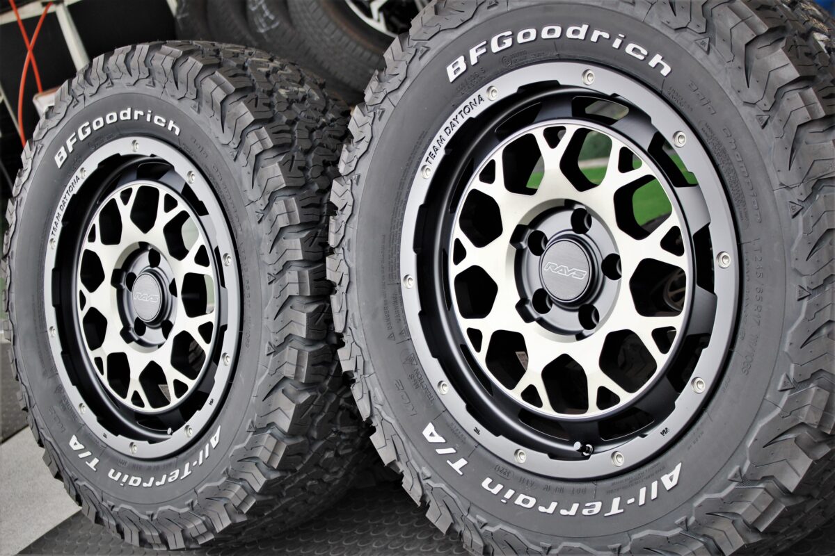 デルタフォースに並ぶ人気オフロードホイールは レイズのデイトナシリーズ!! M9の17インチで人気のタイヤ外径UPをインストール。     レイズホイールの事ならレイズナンバー1ショップのクラフトにご相談を。 知立店金子です。 今回は人気オフロード系ホイールと 人気オフロードタイヤの王道セットアップ。     レイズ デイトナ M9 ホイールカラーは【ブラック/ディスクスモーククリア】 無骨なホイールデザインはごついRAV4にとても相性が良いアイテム。 デルタフォース オーバルと同じくらいの装着率を誇る 王道ともいえるオフロード系ホイール。     タイヤはオールテレーンの中でも最もごつい BFグッドリッチ オールテレーンKO2 タイヤサイズは外径UPの定番サイズ【245/65R17】をセレクト。 入荷してもすぐに嫁ぎ先が見つかる程のアイテム。 製造元は海外の為、日本国内に在庫が無ければかなり納期がかかります。 当店には1台分在庫が御座いますので、即日取り付けも可能です♪ (before) (after)   WHEEL:レイズ デイトナ M9 SIZE:7.0J 17インチ TIRE:BFグッドリッチ KO2 SIZE:245/65R17     最近では海外スタイルでブラックレターが欲しいというお声も出て来ておりますので 他銘柄のタイヤをおススメする事も増えてきましたね!! ただ、どうしてもオールテレーンでMT並みのごつさが欲しいとなれば 間違いなくこのBFグッドリッチ。 全体的にはオフロード仕様にするオーナー様が多いですが、20インチ~22インチまでの 大口径ホイールを足元に取り入れるオーナー様もいらっしゃいます。 オン・オフどちらも似合う車って、そんなに無いのではないでしょうか。     オーナー様、この度はクラフト知立店のご利用 誠に有難う御座いました!! 次はリフトアップでしょうか♪ ご相談いつでもお待ちしておりますね('◇')ゞ