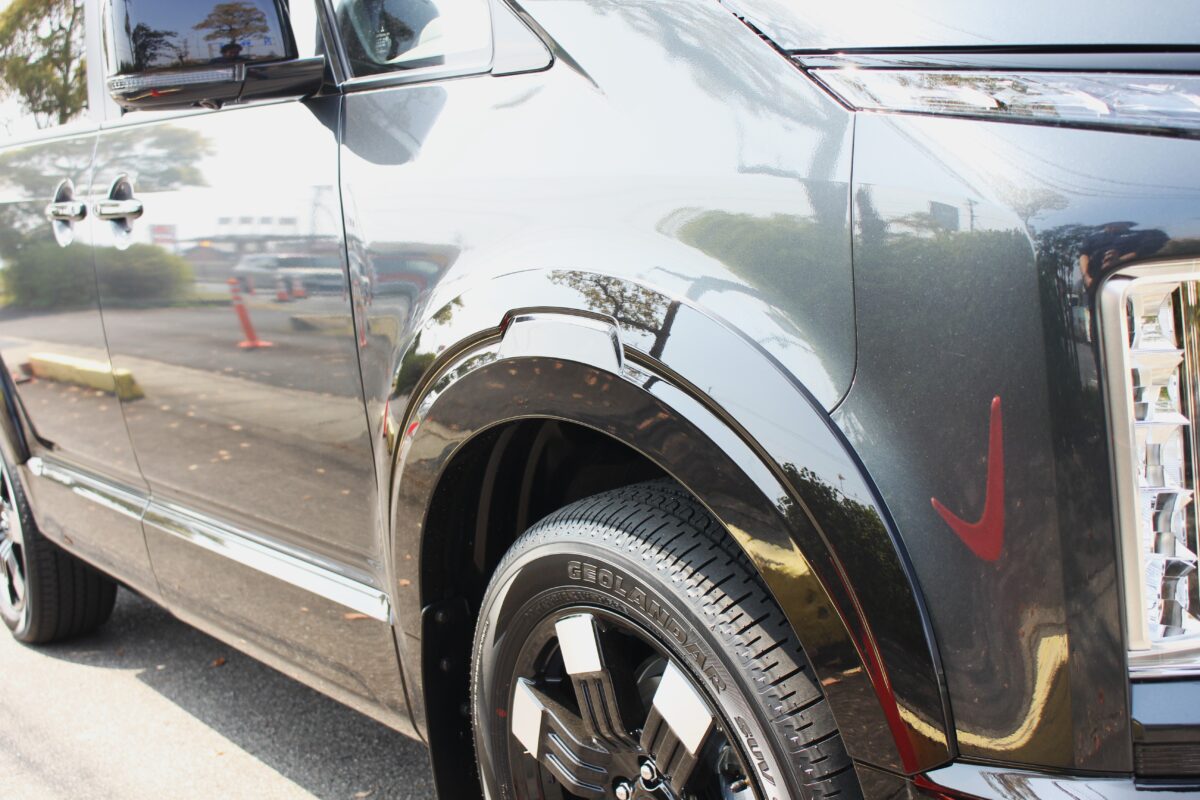 フロントバンパー、オーバーフェンダーが前型よりも大型でゴツい新型デリカD:5。