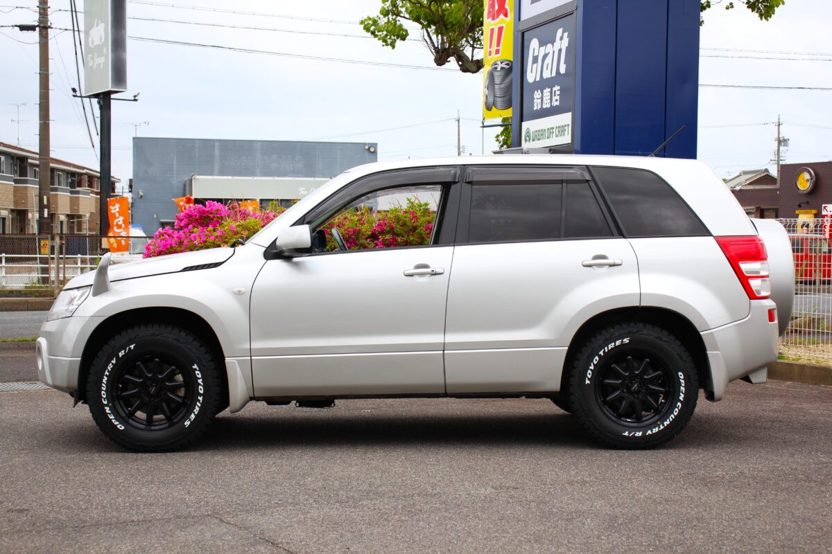 標準17インチ。225/65R17を履くエスクードをオフな仕様へ振る第一手が"タイヤ&ホイールカスタム"。