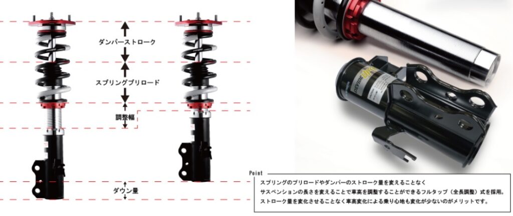 乗り心地を犠牲にせず、ミリ単位での車高調整も可能です