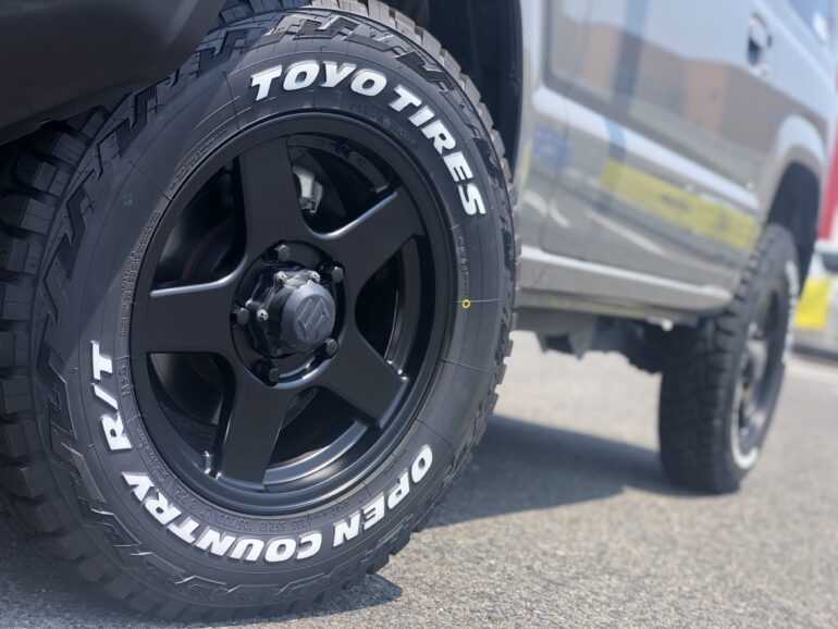 ノマドに老舗4×4メーカーが提案するアーバンオフスタイル Air/G VULCAN ゴーストエディションをインストール! ダークカラーで統一されたお車の足元に存在感をプラスした マッシブスタイルのノマドに仕上がりました!! WHEEL:4×4Engineering Air/G VULCAN ゴーストエディション ランクルオーナーを筆頭に本気のオフローダーに人気のブランド 【フォーバイフォーエンジニアリングサービス】 マスターピースである【ブラッドレーシリーズ】と双璧をなすのが デザイン性を追求し、人気のアウトドアスタイルで足元を彩る 【Air/G】シリーズとなります。 Air/Gシリーズのラインナップは3種類 王道のレンコンディッシュデザインの【Massive】 メッシュデザインを採用した【Rocks】 そして今回オーナー様の心を射抜いたのは アーバンオフスタイルにさらなる重厚感を与え 本格オフローダースタイルを彷彿とさせる 新しいフェイスデザインを採用したモデル【VULCAN】 コンケイブを効かせた唯一無二の迫力のあるフェイスデザインが ノマドの足元を力強く支えてくれます! MTやRTタイヤなどに採用される立体的なサイドウォールや 多くの仮装を施したオーバーランダースタイルなどにも負けない 立体的で存在感のあるホイールを目指して生み出された【ヴァルカン】 細かいディテールが施されたビートロック風のリムに シンプルな面構造で構成された特徴的なディスクデザインが 足元に力強さを与えてくれます。 今回お選びいただいた【ゴーストエディション】は 通常モデルにはないカラーを採用した特別モデル! 切削加工を施したディスクにはマットスモーク塗装を 施し、金属的な光沢を残しつつマットカラーが持つ 重厚感も併せ持つ人気カラーとなっております! ゴーストエディションのもう一つの特徴は リム外周に施されたボルトカラーがブラックに変更され ディスクの雰囲気に合わせたダークカラーで統一されています! 細かな仕様変更ですが、全体の印象が大きく変わるポイントです! コンケイブが取りやすいシエラ・ノマドなら ヴァルカンのデザインをより立体的に引き立てる 圧巻のフェイスを獲得できます!! コンケイブが特徴のAir/Gシリーズとの相性は◎!! センターキャップは純正流用や設定無しという事も 多いジムニーシリーズですが、専用設計の物が前後付属しております。 前後でデザインを統一出来るのも嬉しいポイントですね♪ センターオーナメントも専用カラーが2種類付属されております。 オーナー様の好みに応じてお取り付けいたします('◇')ゞ TIRE:TOYO TIRE OPEN COUNTY A/TⅢ 組み合わせるタイヤは大人気の【オープンカントリーA/T3】をチョイス! オフロードタイヤながら高いオンロード性能からご指名も多いモデルです。 大人気故にメーカー欠品・納期未定の事も多いこちらのモデルとなっております。 今回は店舗在庫分がございましたので、当日お取り付けさせて頂きました! オン・オフどちらも高いトラクション性能を発揮する ジグザグ形状のブロックパターンを採用する事で エッジ面を増やし、オフロードでのトラクション性能を確保 ブロックの高さは控えめにする事でオフロードタイヤ特有の ゴツゴツとした乗り心地やロードノイズは抑えられています。 さらに【スノーフレークマーク】も獲得しており、 雪道においても性能を発揮するオールラウンダーな性能が特徴です。 ※オープンカントリーA/TⅢはスタッドレスタイヤではありません。 過酷な積雪路面や凍結路面はスタッドレスタイヤをご使用下さい。   ~Before~   ~After~ ダークトーンで統一されたホイールにホワイトレターの白が映える☆ オーナー様のカラーチョイスが光るカスタムに! タイヤ外径は定番の215/70R16をチョイス 外径は14mmほどアップと控えめではありますが、 太めのタイヤとホイールのデザインにより 力強くどっしりとした印象のお車に仕上がりました!! WHEEL:4×4Engineering Air/G VULCAN ゴーストエディション SIZE:6.0J-16インチ TIRE:TOYO TIRE OPEN COUNTY A/TⅢ SIZE:215/70R16 ノマドのカスタムで切っても切れない【サイズ問題】 今回も当初検討していたホイールではタイヤの突出が懸念された為 突出リスクを最大限抑えつつ、好みのホイールを探す事に そして行き着いたのが今回の【ヴァルカン ゴーストエディション】 結果としては大正解のチョイスでしたね! オーナー様の手でウィンカーやサイドマーカーが ブラックアウトされており、全体的にダークトーンで まとめられたお車にホイールの色味や雰囲気もピッタリ こういった細かなカスタムが全体の完成度を大きく上げてくれますね! 気になる出面はこのような感じになりました!! 糸を使用して確認も行わせて頂き、 ホワイトレター部分の突出でツラッツラの仕上がり 突出はギリギリ防ぐことが出来ております! シエラでも定番サイズの6.0J-16インチですが、 今回ホイール選びで重視したのはインセット設定 ノマドに合わせインセットを少し甘めで選定しています。 一般的なシエラ定番サイズでは サ
