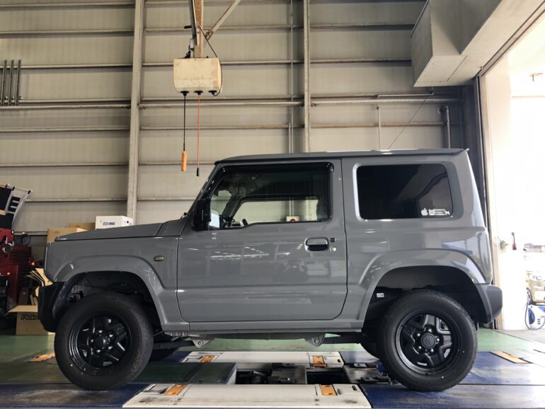 ジムニーの気になる前下がりをリフトアップしながら補正しました!!