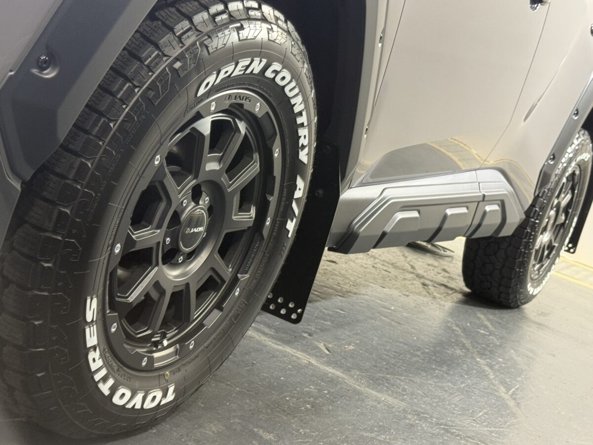 圧倒的人気の「TOYO オープンカントリーAT3」は見た目の「ホワイトレター」だけでなく、走破性の走行性能に加えて、乗り味の良さも定評で「新型RAV4」に相性抜群ですね。
