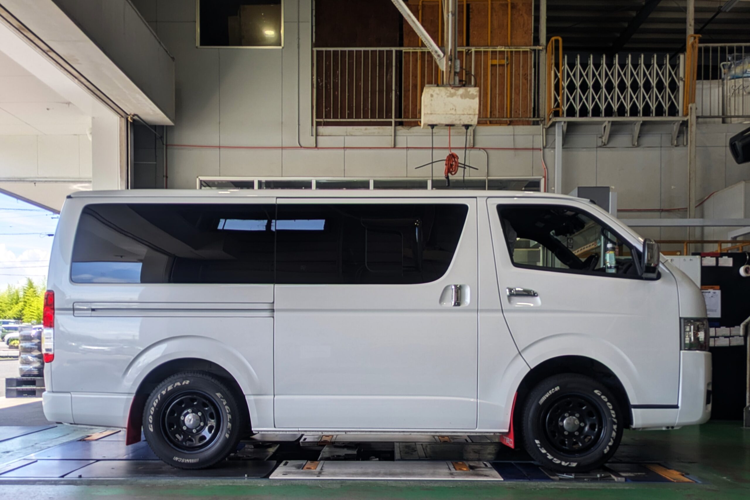 200系ハイエースにホワイトレター。H6スラッグ16in x オプカンR/T=オフなハイエース完成!