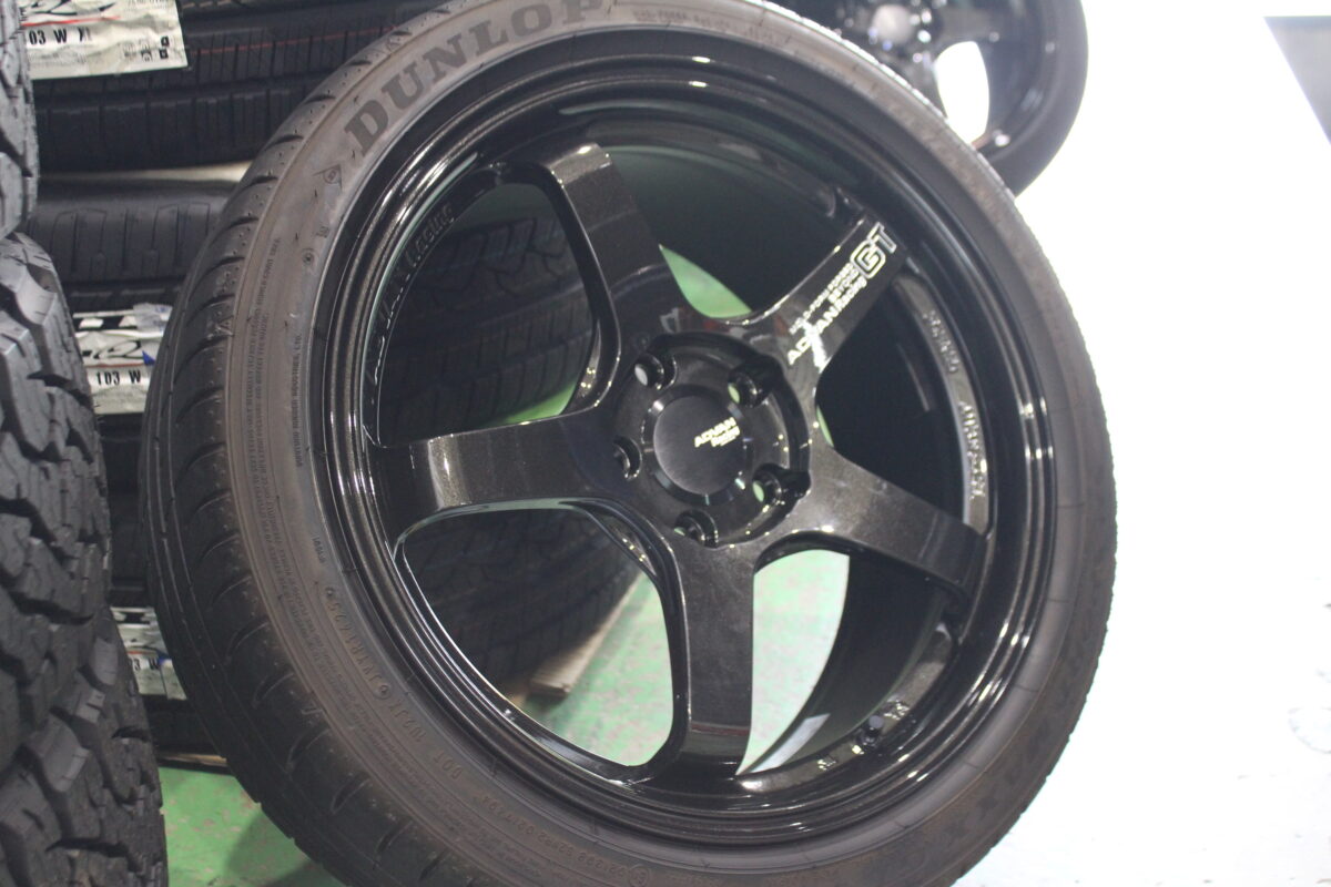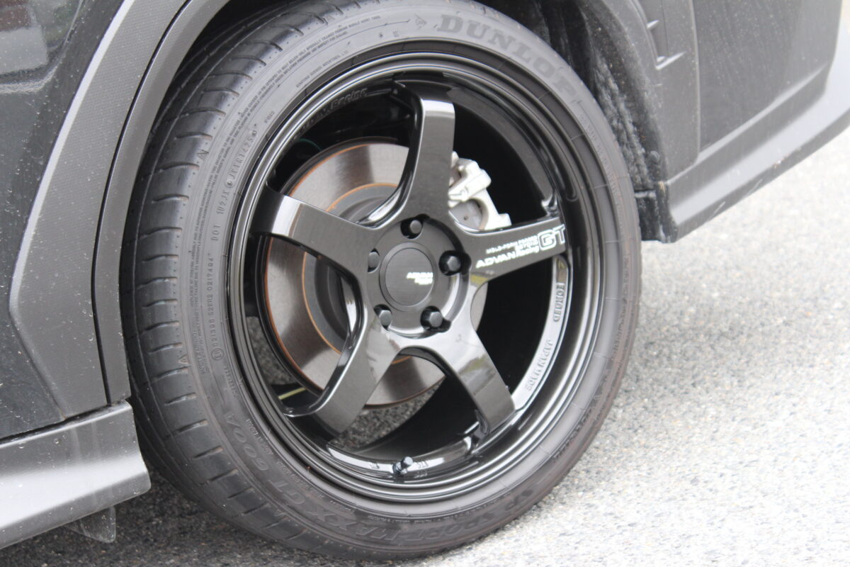 今回はボディカラーのブラックに合わせて、ホイールもレーシングチタニウムブラックで「黒」を強調。