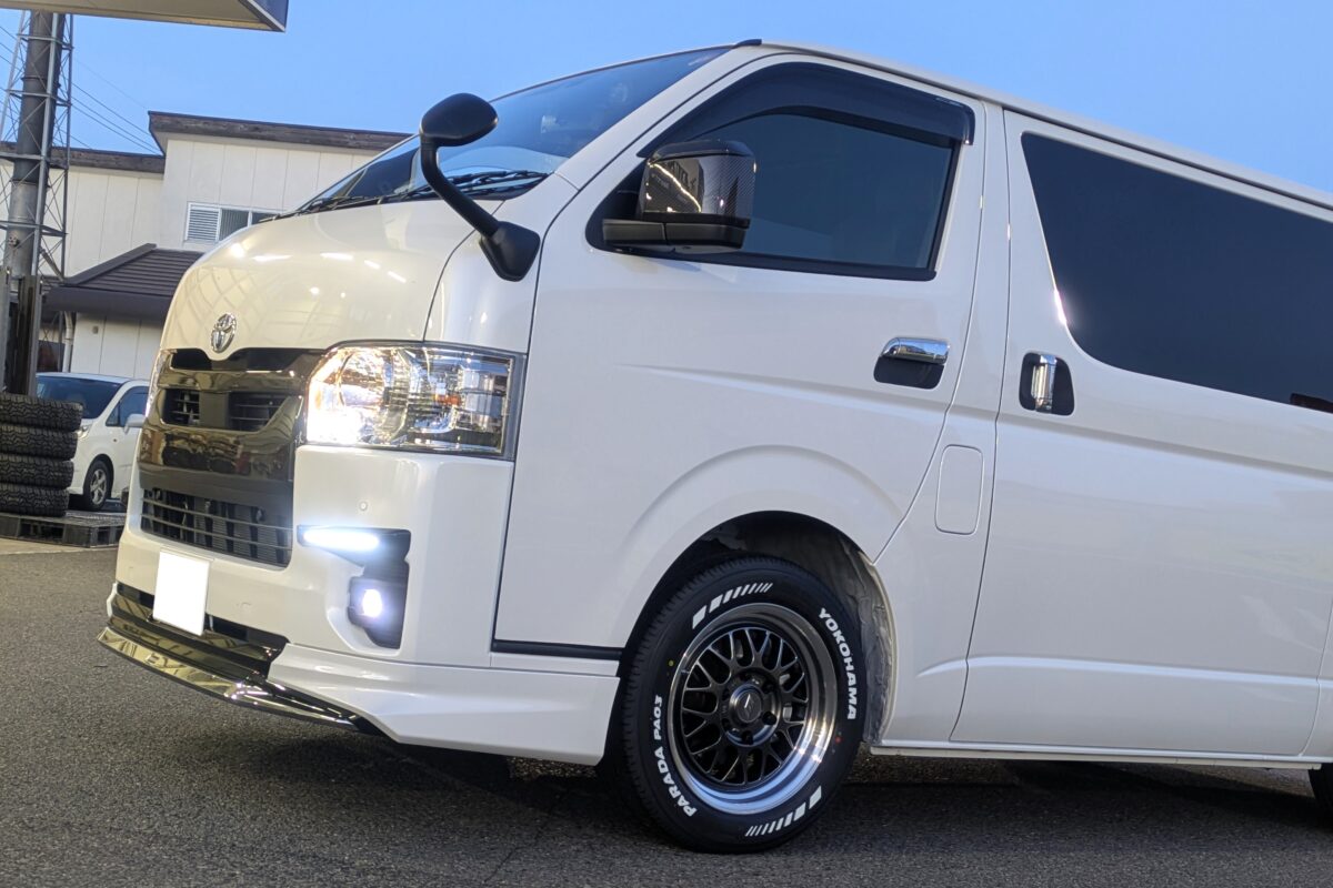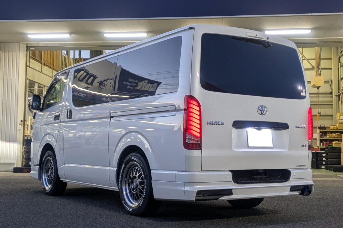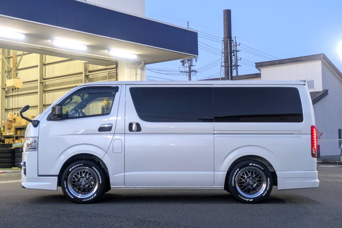ハイエースに深リム&ホワイトレター!WORKの5本スポークがカッコいい!