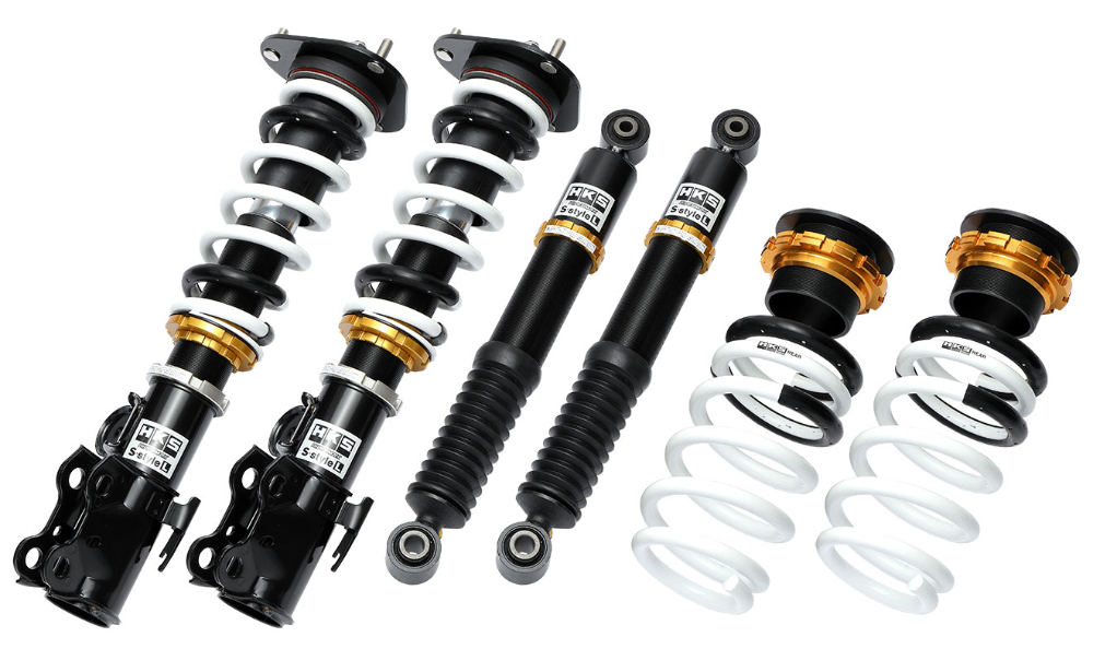 車高や減衰力を調整できるサスペンションダンパーとコイルがセットになった、通称「車高調」。HKSがリリースする「ハイパーマックス Sスタイル L」は、調整範囲の広さに加え、フロント側ダンパーを倒立式とすることで剛性を高めており、定番の売れ筋モデルです。