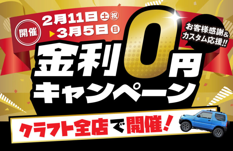 クラフト全店舗対象/金利0円キャンペーンを開催します!