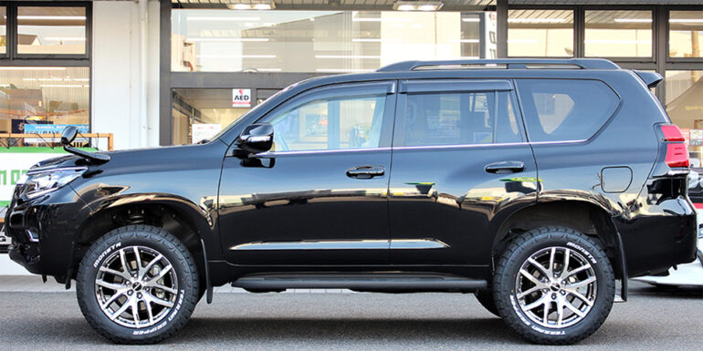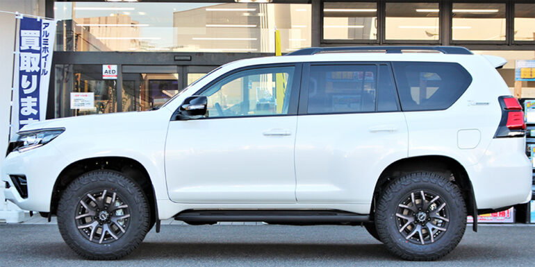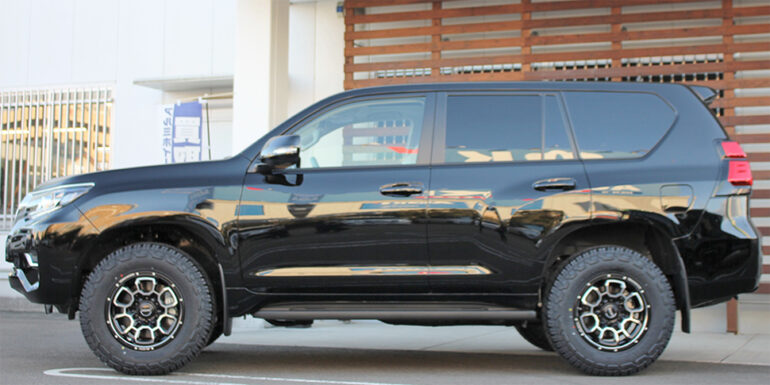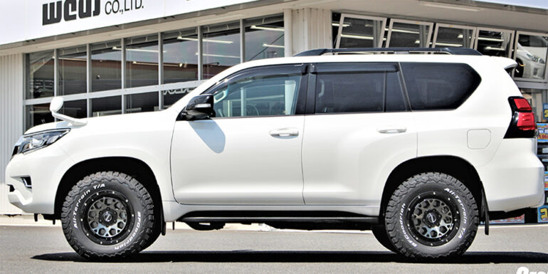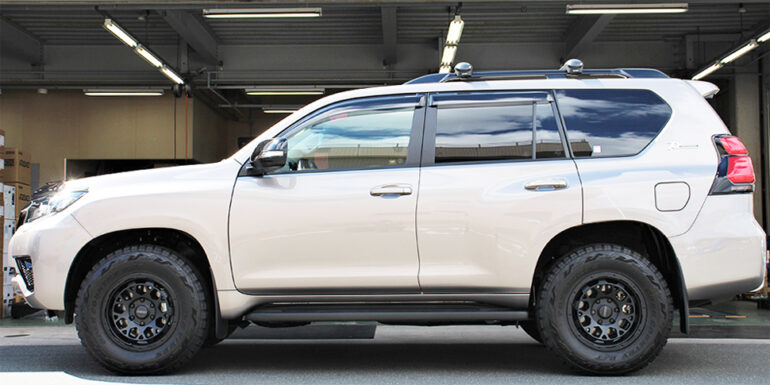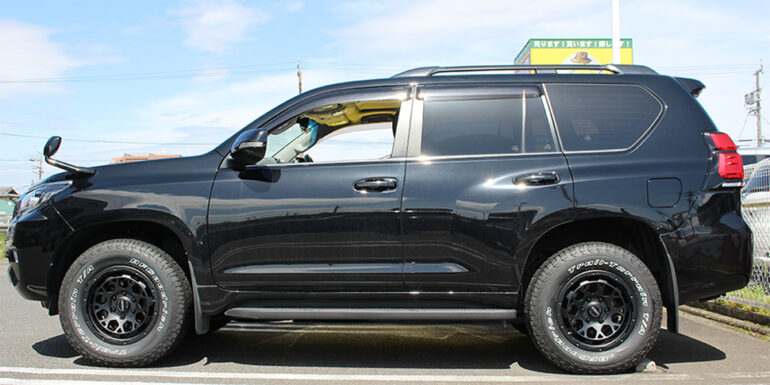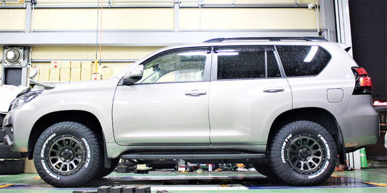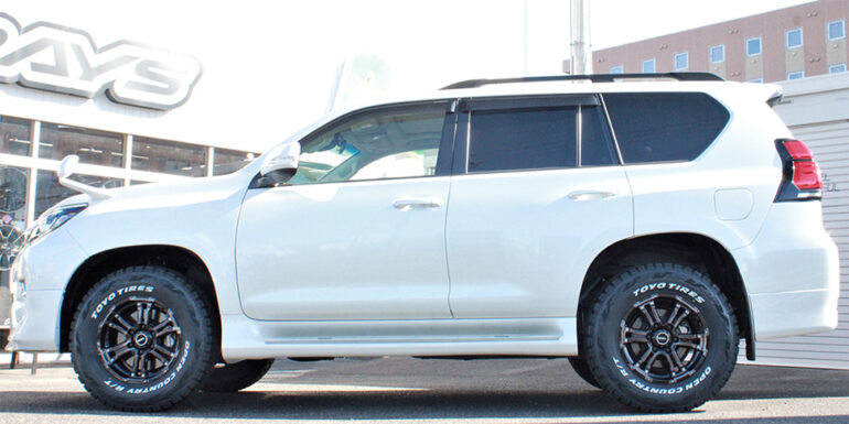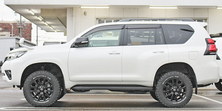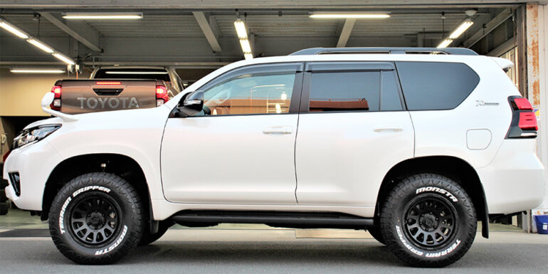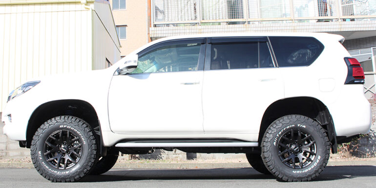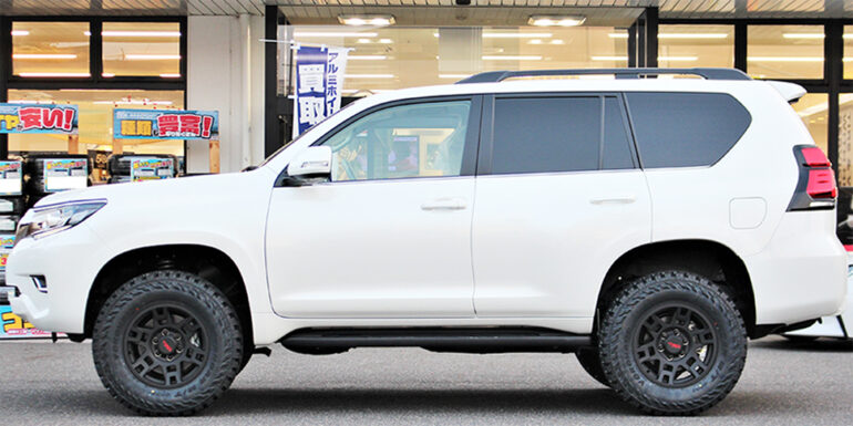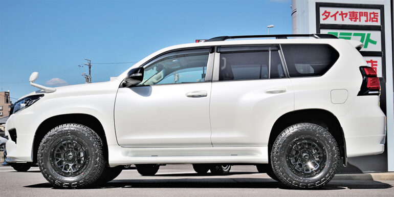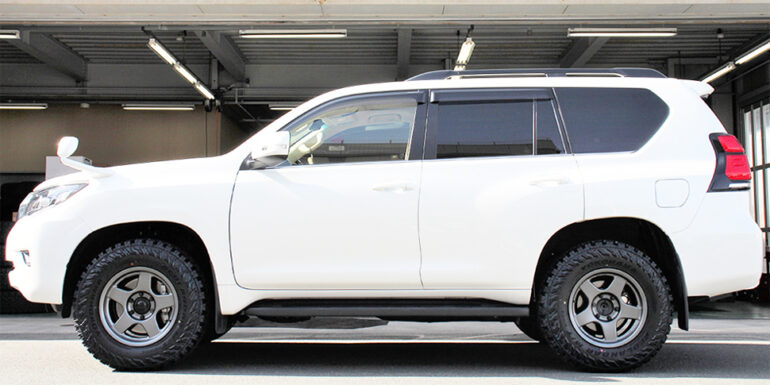 【150ランドクルザープラド】簡単リフトアップとホワイトレタータイヤでオフロード感をさらに演出!