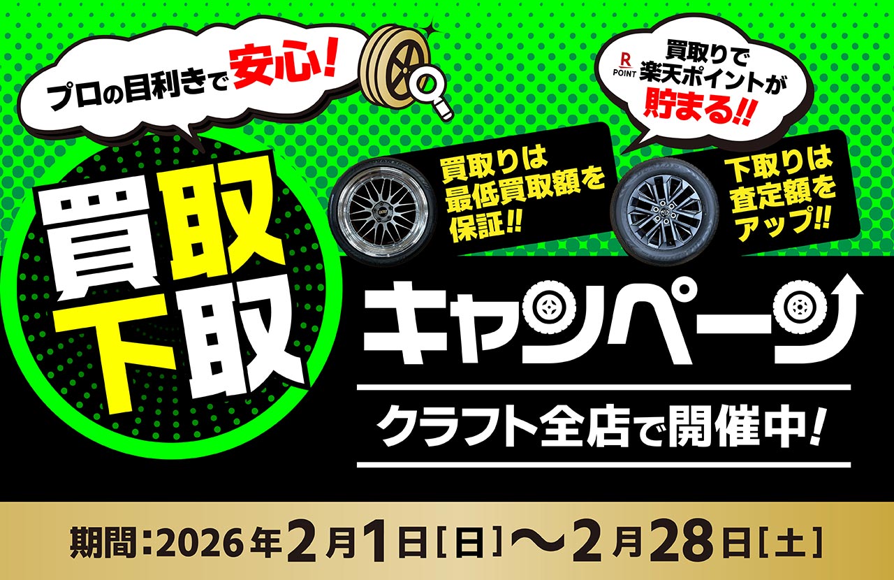 クラフト各店で実施中・実施予定のイベントやキャンペーンをご紹介します。 適時更新しております。ご来店前にぜひご確認ください! キャンペーン クラフト2026春のカスタムフェア 開催店舗 クラフト各店 ※店舗により内容や期間が異なります。詳しくはこちら 開催期間 2026年2月1日(土)~4月30日(木) ※開催店舗により異なります 概要 毎年大好評の「クラフト春のカスタムフェア」が今年も幕を開けます!! クラフト各店で開催されるカスタムのビッグカスタムイベントです! 詳細ブログ この春はクラフトで愛車を仕上げよう!|クラフト2026 春のカスタムフェア キャンペーン 金利ゼロ円キャンペーン 開催店舗 クラフト全店 開催期間 2026年1月5日(月)~5月4日(月祝) 概要 お客様の「欲しい!」を応援するとっておきのキャンペーンです。 キャンペーンの利用はとっても簡単! クラフトメンバー会員の皆様が、キャンペーン対象商品をご購入いただく際に申込書類をご記入いただくだけ。 その際の分割払い金利手数料を全額クラフトが負担いたします! 詳細ブログ クルマのカスタム全力応援!金利ゼロ円キャンペーン!! キャンペーン リフトアップ応援キャンペーン 開催店舗 相模原店 開催期間 2026年3月1日(日)~30日(月) 概要 3月はリフトアップキャンペーンを開催します。  期間中のリフトアップサスペンション成約で通常よりお求めやすくご案内!  タイヤホイールのみならずリフトアップも含めてトータルアーバンオフカスタムしませんか!  皆様のご来店をお待ちしております! 詳細ブログ 【イベント情報】3月1日~30日はリフトアップキャンペーンを開催します! キャンペーン MIDホイール展示会 開催店舗 相模原店 開催期間 2026年3月20日(金祝)~4月5日(日) 概要 期間中は、ナイトロパワーやMIDレーシングなど、あらゆるカテゴリーに対応する人気モデルを多数展示いたします。  ■ MID人気ラインナップ展示:3月20日(金・祝)~4月5日(日)  ■ 2026年新作ホイール特別展示:4月2日(木)~4月5日(日) ランクル250、デリカD:5、ジムニーなどのオフロードカスタムから、ロードスター、86/BRZといったスポーツカーなど、幅広いサイズラインナップを実物でご確認いただけます。 春のドレスアップシーズンに向けてホイールをご検討中の方は、ぜひこの機会にクラフト相模原店へお越しください。 詳細ブログ 【イベント情報】3/20からMIDホイール展示会開催します!4/2からは新作展示もございます! キャンペーン クラフト尾張旭店OPEN一周年祭 開催店舗 尾張旭店 開催期間 2026年2月28日(土)~4月26日(日) 概要 皆様への感謝の気持ちを込め、2月末から4月末まで「クラフト尾張旭店オープン一周年祭」をロングラン開催いたします! 最新のオフロードスタイルから、憧れの鍛造ホイール、走りを変えるサスペンションやマフラーまで、各ジャンルの人気ブランドが尾張旭店に集結します! フェア期間内は、もちろん一周年セール特別価格で販売! 詳細ブログ お得な1周年記念企画が盛りだくさん!|クラフト尾張旭店OPEN一周年祭 キャンペーン ジムニーカスタムフェア 開催店舗 岐阜長良店 開催期間 2026年4月18日(土)~26日(日) 概要 クラフト岐阜長良店にて、ジムニー、ジムニーシエラ、ジムニーノマドのオーナー様を対象とした「ジムニーカスタムフェア」を開催いたします。 ジムニーシリーズに向け、専用設計の人気ホイールを豊富に展示! ホイールだけでなく、リフトアップサスペンションやマフラーなどのカスタムパーツのご相談もお気軽にどうぞ! また、本イベント期間中のご成約特典もご用意しております。 納車待ちの方や、カスタムをご検討中の方も、ぜひこの機会にご相談ください。 スタッフ一同、皆様のご来店を心よりお待ちしております。 ※繁忙期など作業状況により、一部のピット作業(アライメント調整など)をお引き受けできない場合がございます。詳しくは店舗へお問い合わせください。 クラフト各店では、さまざまなキャンペーンやイベントを開催しており、このページと各店ブログでご案内いたします。 ぜひお近くのクラフトをご利用ください。