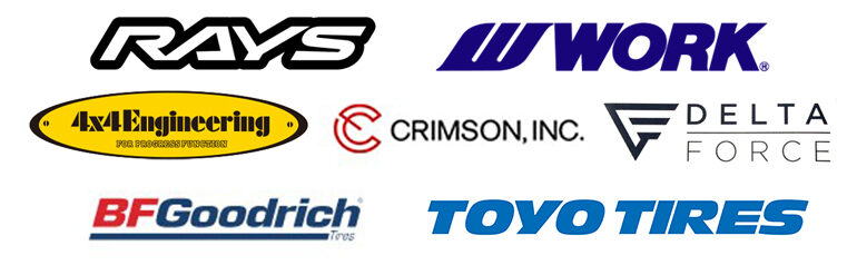 RAYS(レイズ)、WORK(ワーク)、4x4エンジニアリングサービス、CRIMSON(クリムソン)、DELTA FORCE(デルタフォース)