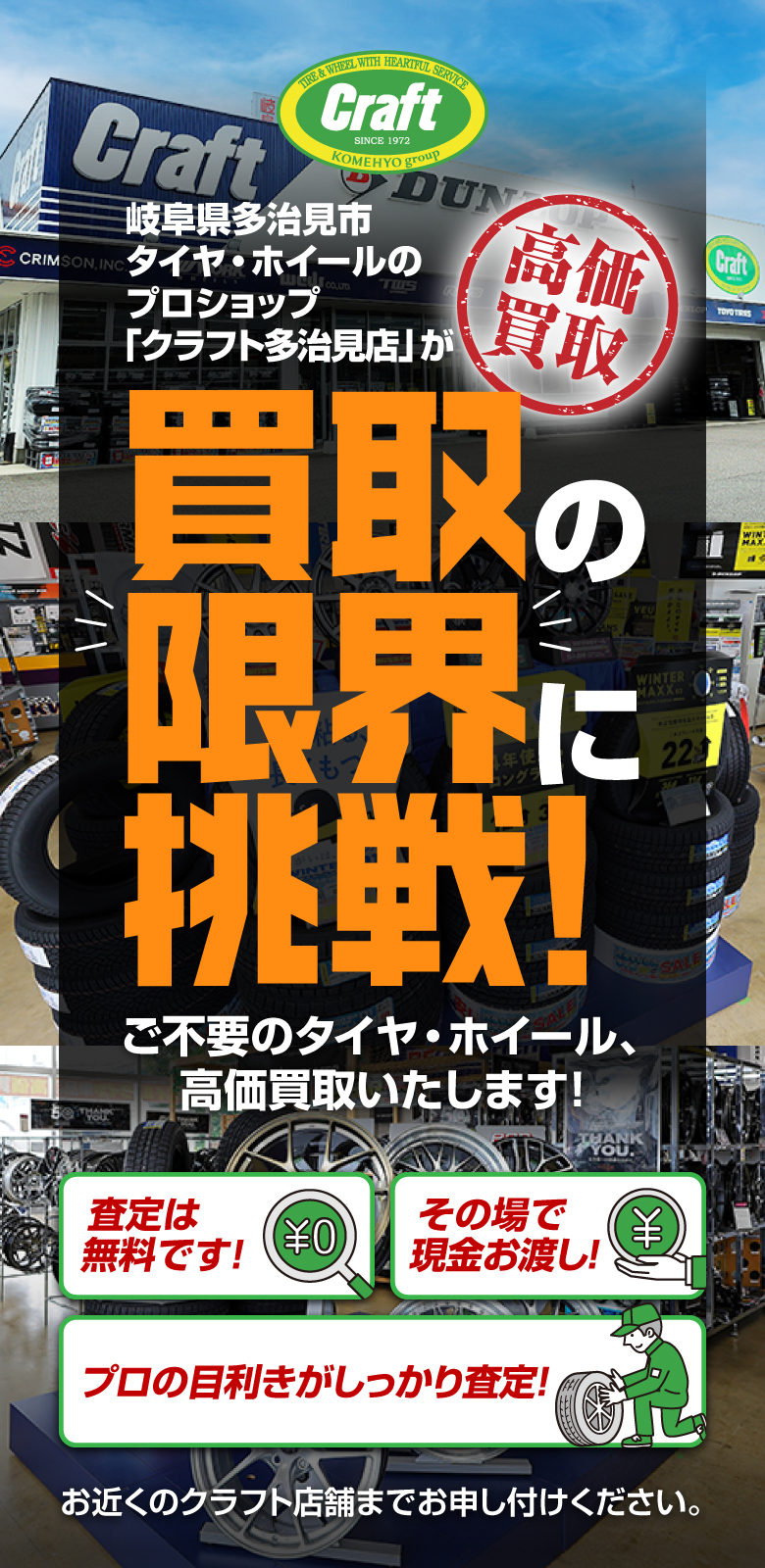 タイヤ・ホイールの買取ならタイヤ一筋54年のプロショップ