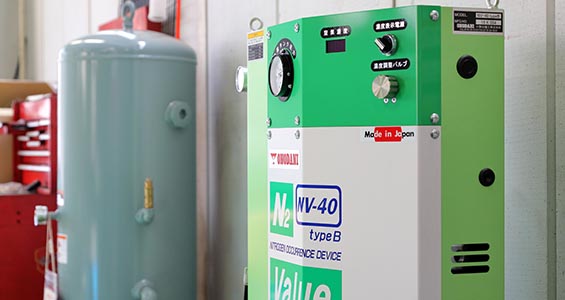 クラフトでは、全店舗に窒素ガスの生成と充填ができる専用設備を備えています。
