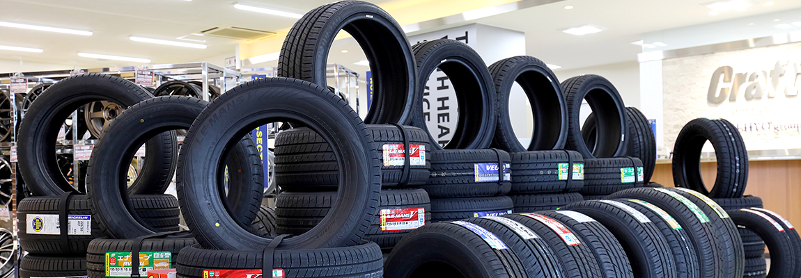 クルマの重量を支えながら路面に動力を伝える「タイヤ」は、使うほどに摩耗・劣化する消耗品です。大小さまざまなサイズのホイールに対応するため、タイヤにもたくさんのサイズが存在します。まずは愛車のホイールにきちんと適合するタイヤを選ぶ必要があります。店舗に展示中のタイヤの中から、愛車のホイールに適合するタイヤをお探しください。