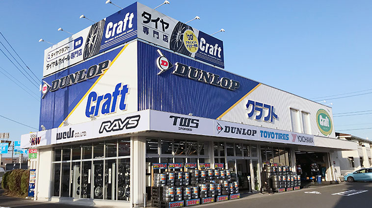 神奈川県厚木市、国道129号線沿いに位置するクラフト厚木店。圏央道の開通に伴い、最近では遠方から高速道路を利用してご来店いただけるお客様も多くなりました。厚木地区周辺のみならず、神奈川県外のお客様にもタイヤ・ホイール&足廻り専門店として広く認知していただけているのは嬉しい限りです。